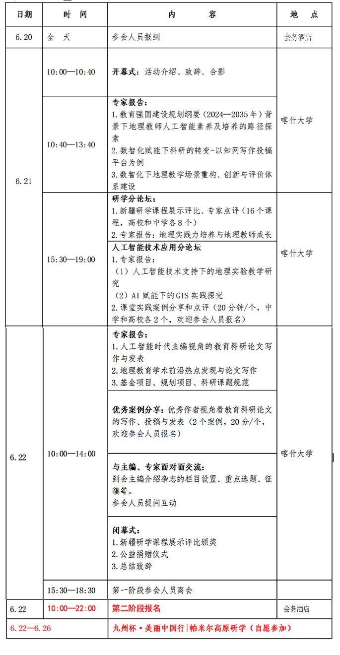 为深入贯彻《教育强国建设规划纲要(2024—2035年)》关于“深化人工智能助推教师队伍建设”的战略部署,全面落实教育部《新时代基础教育强师计划》《关于加强高校有组织科研推动高水平自立自强的若干意见》等有关文件精神,加快推进地理教育数字化转型与智能化升级,着力提升地理教师科研创新能力,九州杯地理教学创新大赛组委会联合国内权威学术期刊和地理教育技术研发与应用机构,拟举办地理教学创新发展研讨与教师科研能力提升研修会(喀什站)。