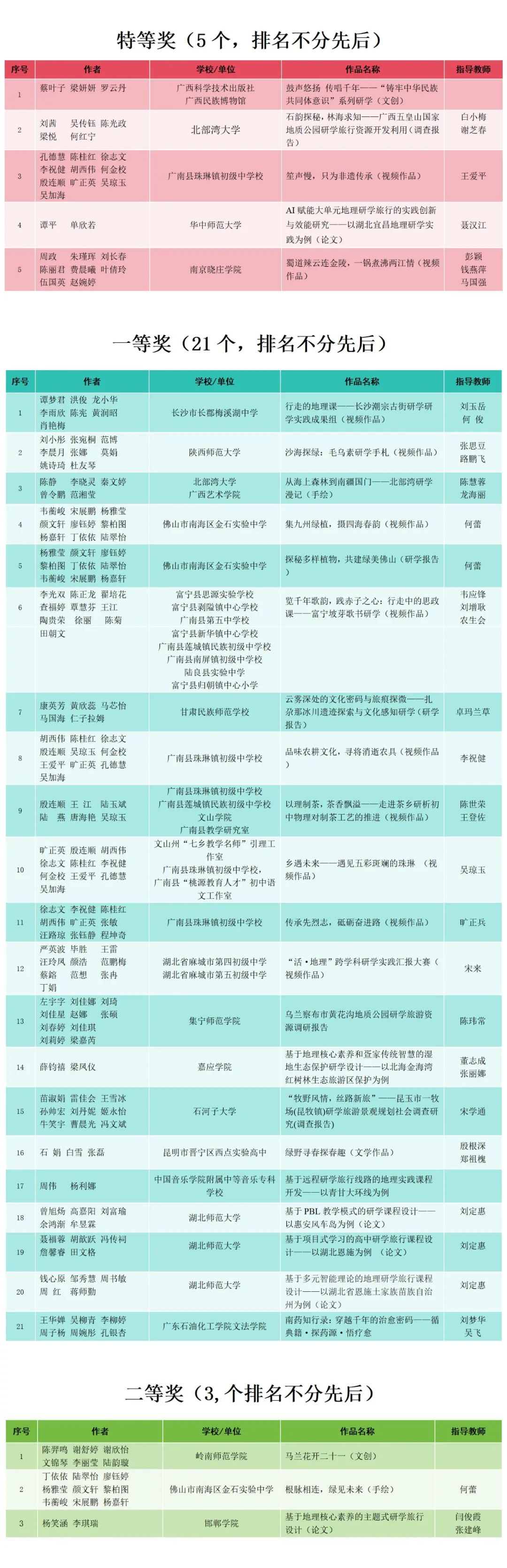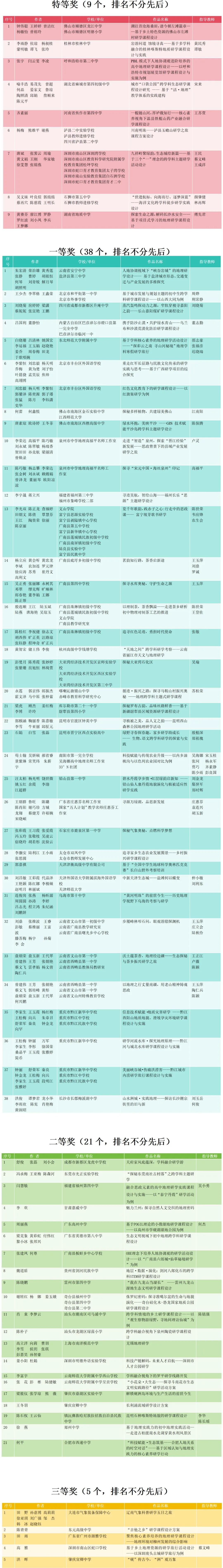 2025年全国研学课程设计大赛线上赛获奖名单(一)